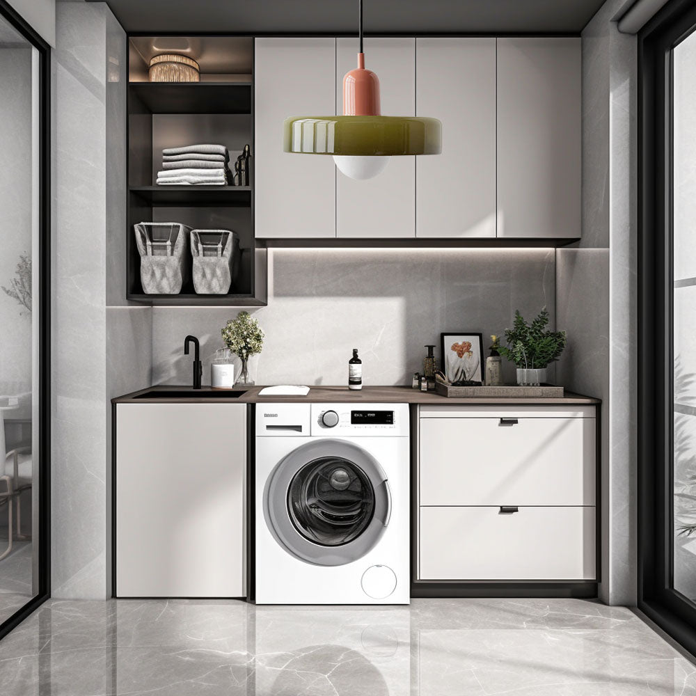 The Retro Glass Pendant Light is a colourful, character-filled fixture that brings warmth, personality, and a touch of retro charm to kitchens, dining rooms, and living spaces. Its wide glass shade diffuses light evenly, casting a warm glow that feels as good as it looks — whether you hang one solo above a dining table or line up a few across a kitchen island. Available in both hardwired and plug-in options, it's flexible enough to work however your space needs it.